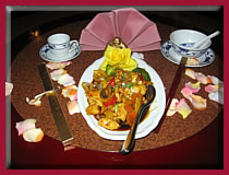 Z7 Ente mit Gemüse nach Canton-Art,Soße wird extra serviert ( leicht sauer, scharf ) Und Chop Kam mit verschiedenem Fleisch und Gemüse (scharf) |